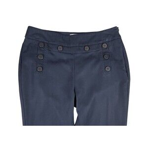 CAbi Mariner Trouser Dress Pants Size 4 Sailor Buttons Side Zip Stretch Navy