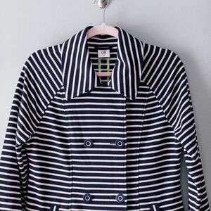 CAbi Maritime Trench Coat - Navy & White Stripe - Knit - Size Medium
