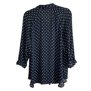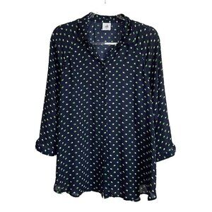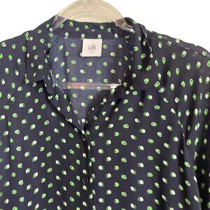 CAbi Martini Blouse M Print Button Up Top Blue Green White Button Up
