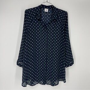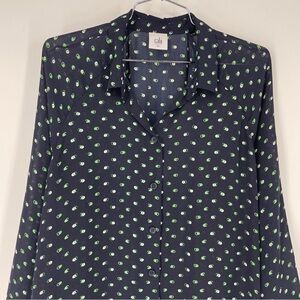 CAbi Martini Blouse M Print Button Up Top Blue Green White Button Up