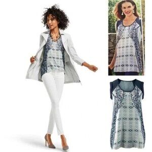 CAbi Mixed Print Tunic Top 253 Chiffon Summer Spring Blue Blouse Sleeveless