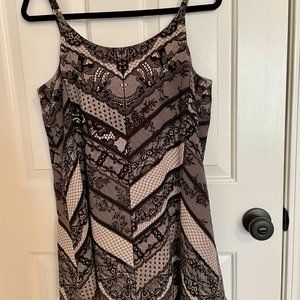 CAbi Monaco Lace Print Camisole #3278 Sz M. Black & nude lace print tunic length camisole with adjustable straps. This cami’s chevron placement print creates the illusion of an ornate lace overlay. It features a flattering sweep at the hips and a tunic length hem