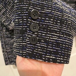 CAbi Multi Texture Tweed Blazer in Black/White/Navy, size 10