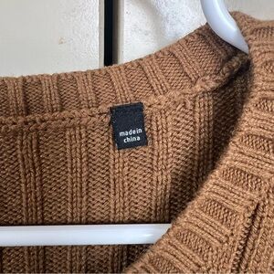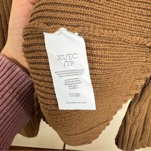 CAbi Mustard Brown Luna Pullover Ribbed Chunky Boxy Crop Sweater Size XS