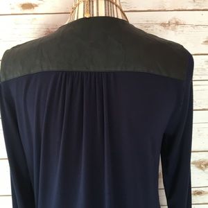 CAbi Navy Blue Faux Leather Panels Tunic Size M
