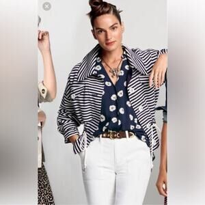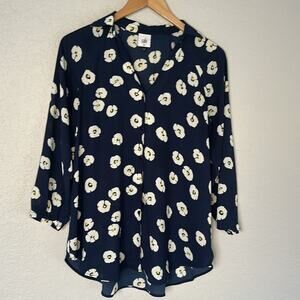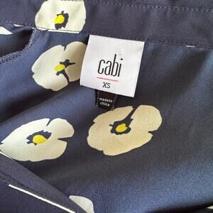 CAbi Navy Floral To Go Button Up Blouse White Poppy Office Preppy 5705 Fall XS