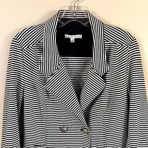 CAbi Navy/White Striped 3/4-Sleeve Double Breasted Blazer Jacket Size Medium