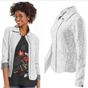 CAbi Neo Moto Jacket womens size medium Heathered Gray zip up button soft knit