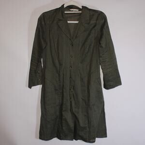 CAbi Olive Green 100% Cotton Button Up Long Sleeve Dress XS