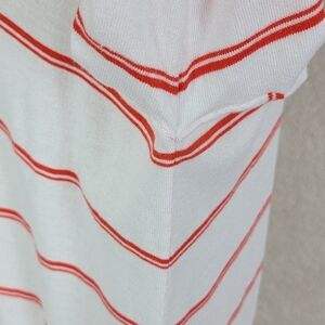 CAbi Orange And White Striped Stroll Long Open Face Cardigan/Duster Sweater Sz M
