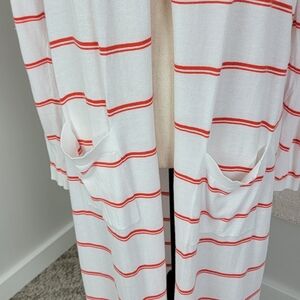CAbi Orange And White Striped Stroll Long Open Face Cardigan/Duster Sweater