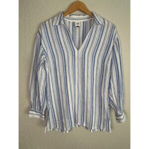 CAbi Pacific Blue Striped Linen Tunic Top Style 5894 Small Coastal Preppy