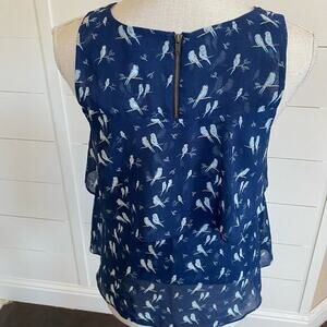 CAbi Parakeet Chirp style #3447 blue bird layered tank top/ blouse with gold zipper in the back. Size XS.