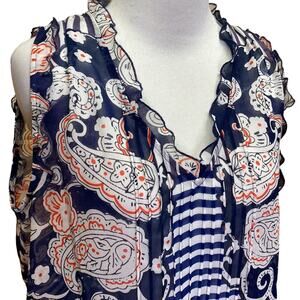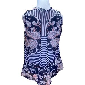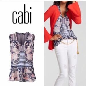CAbi Peplum Paisley Striped Ruffle Sleeveless Blouse Top Size XS #5349