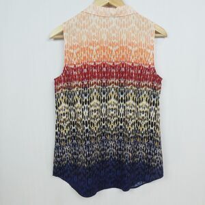 CAbi Peter Pan Collar Tunic Blouse Sz S Coral Navy Leopard Style 3078