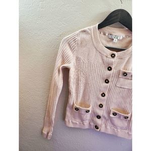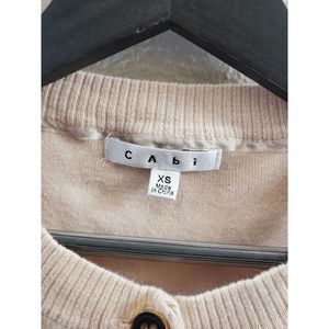Stylish CAbi cardigan. Features button-up front. Ribbed texture with pockets.