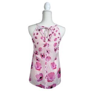CAbi Pink Floating Poppies Tie Back Halter Tank - Size XS
