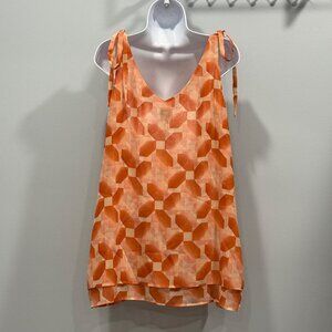 Description: CAbi Pinwheel Lined Layered Tie Shoulder Tank Top Orange Office Womens L NEW