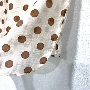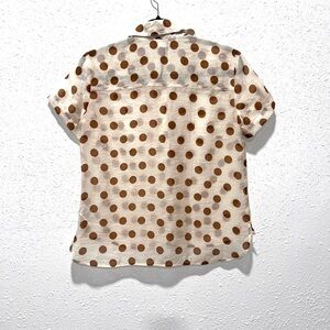 Cabi Polka Dot Spectator Shirt, featuring a cream or off-white base color with brown polka dots.