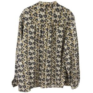 CAbi Providence Shirt Jacket in Yellow and Grey Leopard Print Women’s Size XL