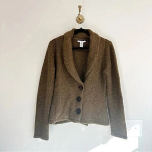 CAbi Quiet Luxury Brown Knit Velvet Button Collared Cardigan Size Medium