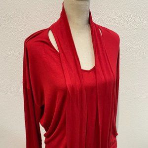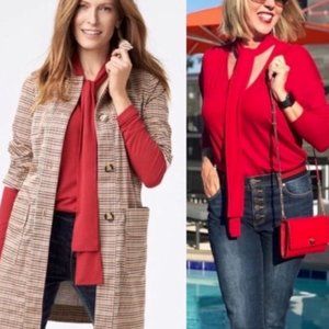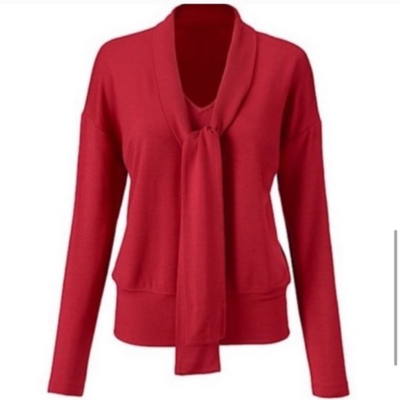 CAbi Red Blouse Long Sleeve Sweater Neck Tie Medium Holiday Rayon