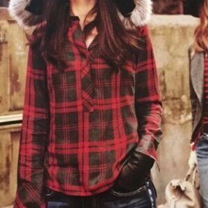 CAbi | Red Gray Plaid Cunningham Shirt #3587 Size Small