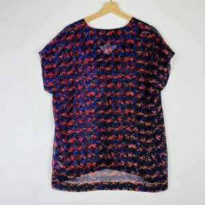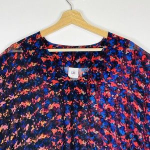 CAbi Red Pink Blue Splatter Chiffon Sheer Loose V-Neck Top Shirt Womens Medium