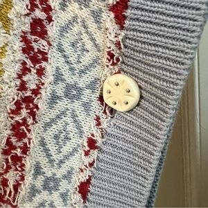 CAbi Red Yellow and Gray Fringe Geographic Knit Poncho Sweater Kimono