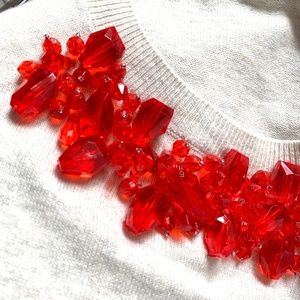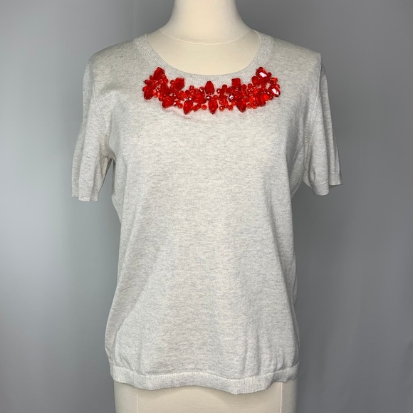 CAbi Rock Candy Shell Sweater Beaded Short Sleeve Sweater