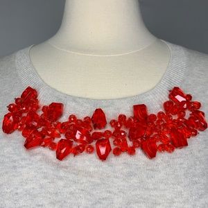 Red beading at neckline