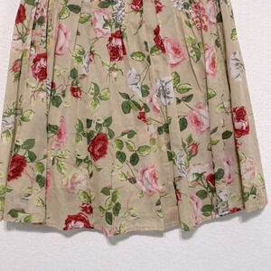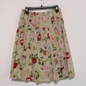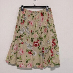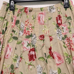 CAbi Rose Garden Summer Floral Pleated Mini Skirt Tan Pink Size 4
