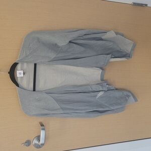 CAbi open waterfall cardigan Like-new condition One asymmetrical pocket Sage green color 100% cotton. No noticeable flaws, just wrinkles.