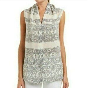CAbi Scrollwork Scroll Print Tunic Blouse Top Ivory & Black Sleeveless