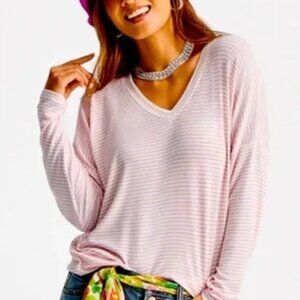 V-neckline with long, slim sleeves and easy fitting wedge shape.