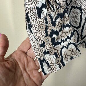 CAbi Serpentine Snake Print Blouse Multi Womens Size M Neutral Work Shirt Boho