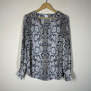 CAbi Serpentine Snake Print Long Sleeve V Neck Blouse - Size Medium