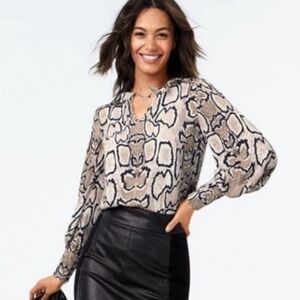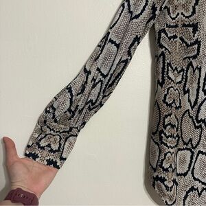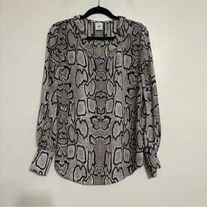 CAbi Serpentine Snake Print Sheer Ruffle V Neck Blouse 3759 Size Medium