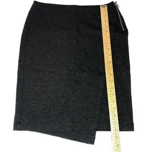CAbi Black Asymmetric Faux Wrap Zipper Stretch Short Pencil Skirt