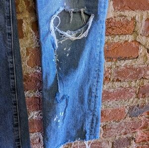 CAbi Size 6 100% BF Distressed Boyfriend Capri Blue Denim Jeans
