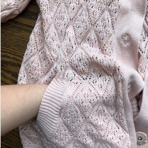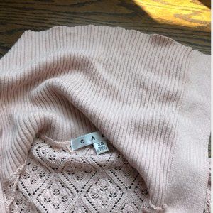 Sweater: Soft Pink Knit Cropped Sweater with Foldable Collar, 3 Snap Closuress, Belle Sleeves, (Size XS)