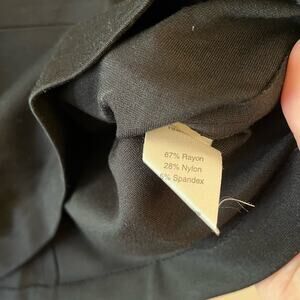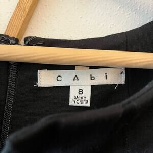 CAbi black sleeveless boatneck blouse with pleating and notch at neckline. Size 8