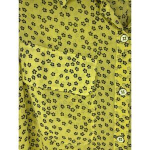 CAbi Sleeveless Button Up Blouse Womens L Yellow Black Floral Collar Flowy Sheer