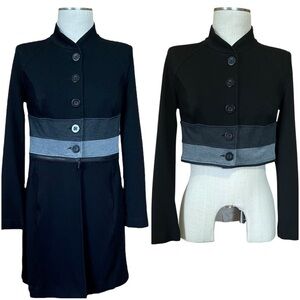 CAbi Small Black Gray Convertible Military Style Peacoat Jacket Office Corpcore