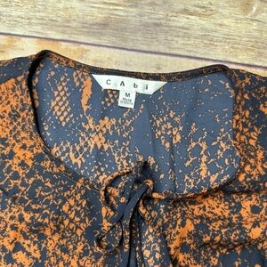 CAbi Snakeskin Blouse Blue Orange Pattern Green Fall Autumn Faux Wrap Top