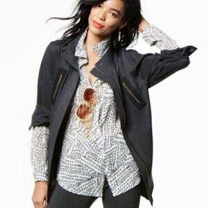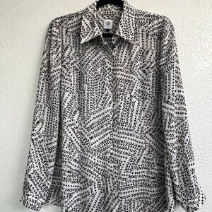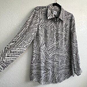 CAbi Split Back Button Up Blouse Top Black White Shirt Size Small