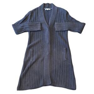CAbi Stay Cozy Dark Gray Cable Knit Snap Front Duster Sweater