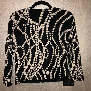 CAbi String of Pearl Preppy Academia Old Money Up town Black Cream Cardigan Med