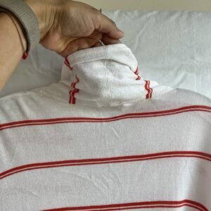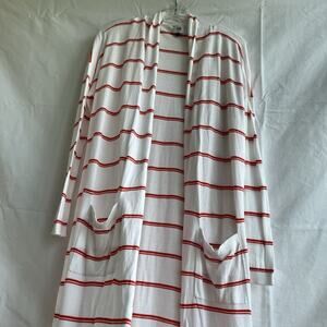 CAbi Stroll Long open front Cardigan Sweater Duster orange Stripe Size M, front pockets. Cotton blend. Casual, loungewear, comfort, fall, boho.