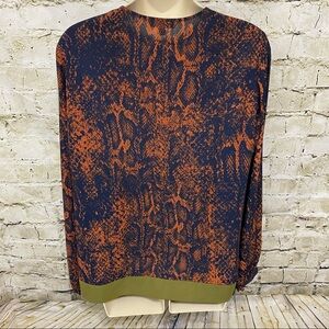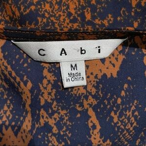CAbi Womens Medium Style #101 Border Wrap Snake Print Tie Blouse Orange Blue in good used condition. No stains, tears or rips.